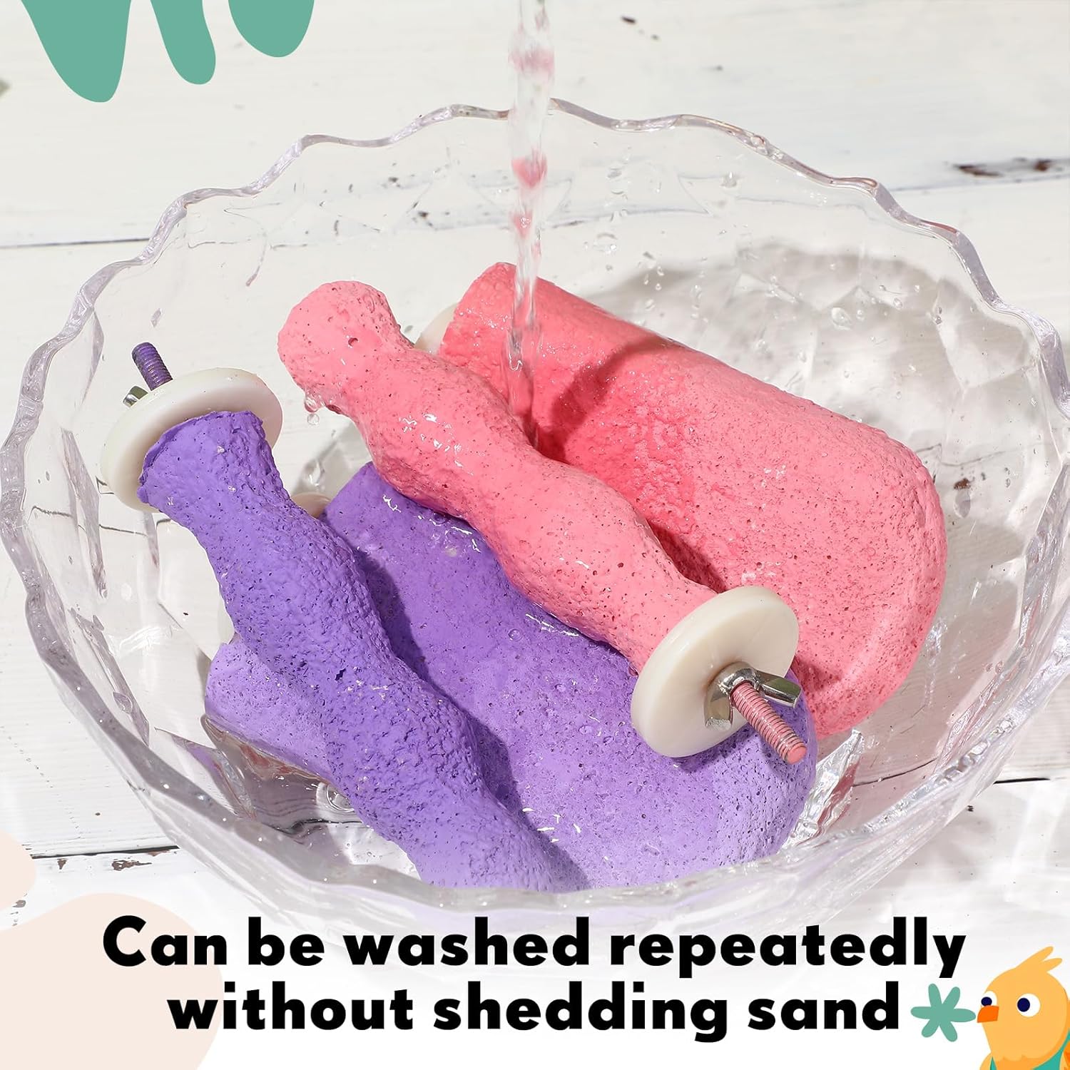 Soulchen 4 Pcs Bird Beak Grinding Calcium Stone Perches Parrot Teeth Mouth Molar Cage Accessories Platform Paw Grinding Sticks Jumping Stand for Macaws Parakeets Finches Cockatiel (Purple,Pink)