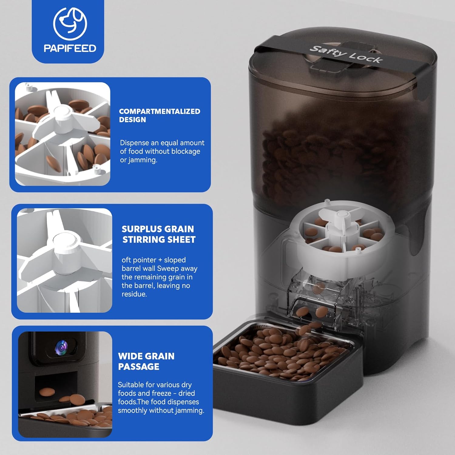 PAPIFEED Automatic Cat Feeder,Camera 1080P HD - 6L Pet Feeder, 2.4/5G WiFi Smart App Control, Bluetooth Assist Link,Wide-Angle Lens,Automatic Feeder for Small and Medium-Sized Pets (Wide Angle Video)