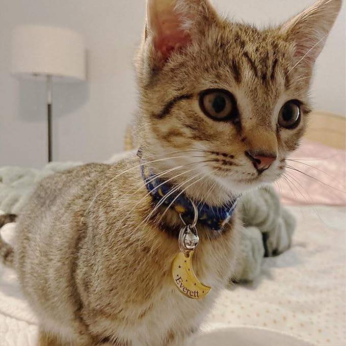 Anavia Small Size Dog Cat ID Tags, Small/XS Personalized Color Plated Stainless Steel Puppy Kitten Name Tags, Customized Engraved Nameplate Pet Collar Tag (Purple, Moon)