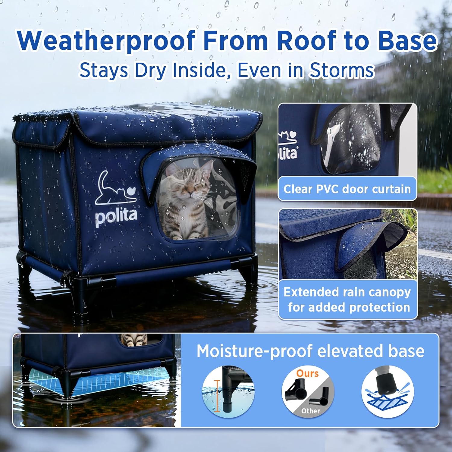 Rugged Heated Cat House for Outdoor Cats in Winter, Extremely Insulated & 100% Weatherproof, Elevated Feral Cat Shelter with Waterproof Eaves & Safe Escape Door for Stray & Barn Cats