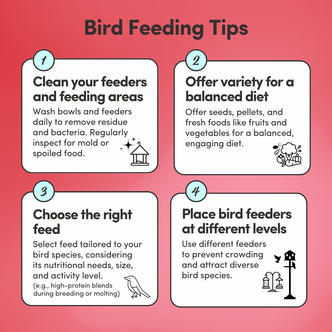 - Supports Skin & Feather Vitality: Rich in omega fatty acids from safflower, hulled peanuts, and pumpkin to reduce dryness, support molting, and promote glossy, resilient plumage.