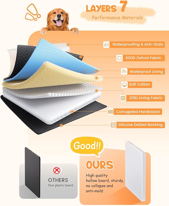 - 100% Waterproof & Easy to Clean: The back seat pet cover for dogs features a 7-layer premium layers, the surface is made of high-density oxford fabric which scratch-resistant, wipe-clean. And first waterproof layer paires with a PVC layer that advanced dual waterproof to block all liquid seepage. Soft PP cotton interior cushions bumps for a smoother ride, while non-slip dots grip seats firmly. Machine washable for easy care. (Tip: Remove PP board and need use a laundry bag.)
