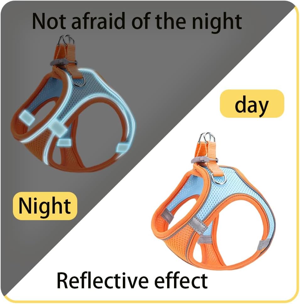 - ๐ใUltra BreathableใThe step-in dog harness is made with super breathable sandwich air mesh, which is thin, cooler, soft and more comfortable. The surface of sandwich mesh fabric is covered with holes, which can keep your dog dry in daily walking. So our small puppy harness is perfect for walks in any season, such as the upcoming spring, give pets an extraordinary wearing experience. Now you can have a happy walking with your pet dog!