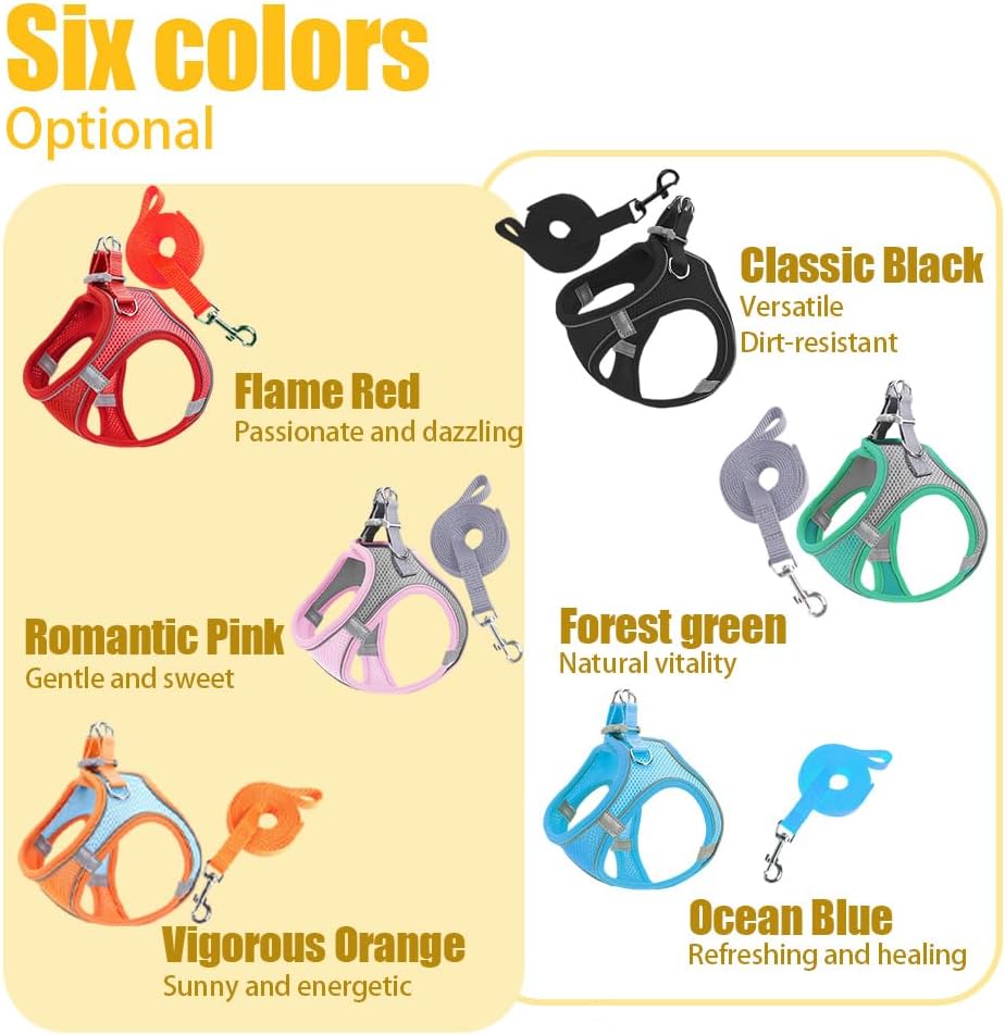 - ๐ใTangle-free LeashใThe Puppy Harness is equipped with a dog leash. The 360ยฐ rotating metal buckle is easy to hook and avoid tangling. There is no need to buy an extra dog leash.