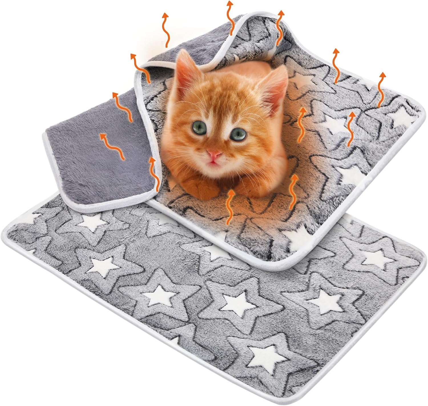 2 Pcs Large Self Warming Cat Pad Self Heating Cat Mat Bed Dog Crate Pet Blankets Thermal Heated Bed Mat for Outdoor Indoor Newborn Kittens Puppies Dog(Double Star,24 x 18)