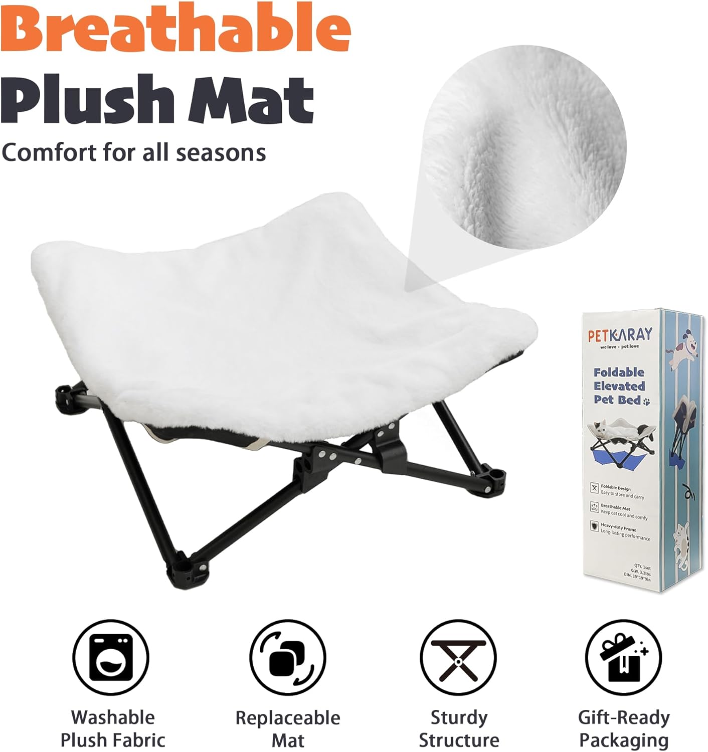PETKARAY Foldable Elevated Cat Bed, Fluffy Kitty Lounge Furniture with Metal Frame, Raised Cat Hammock Chair for Indoor Cats