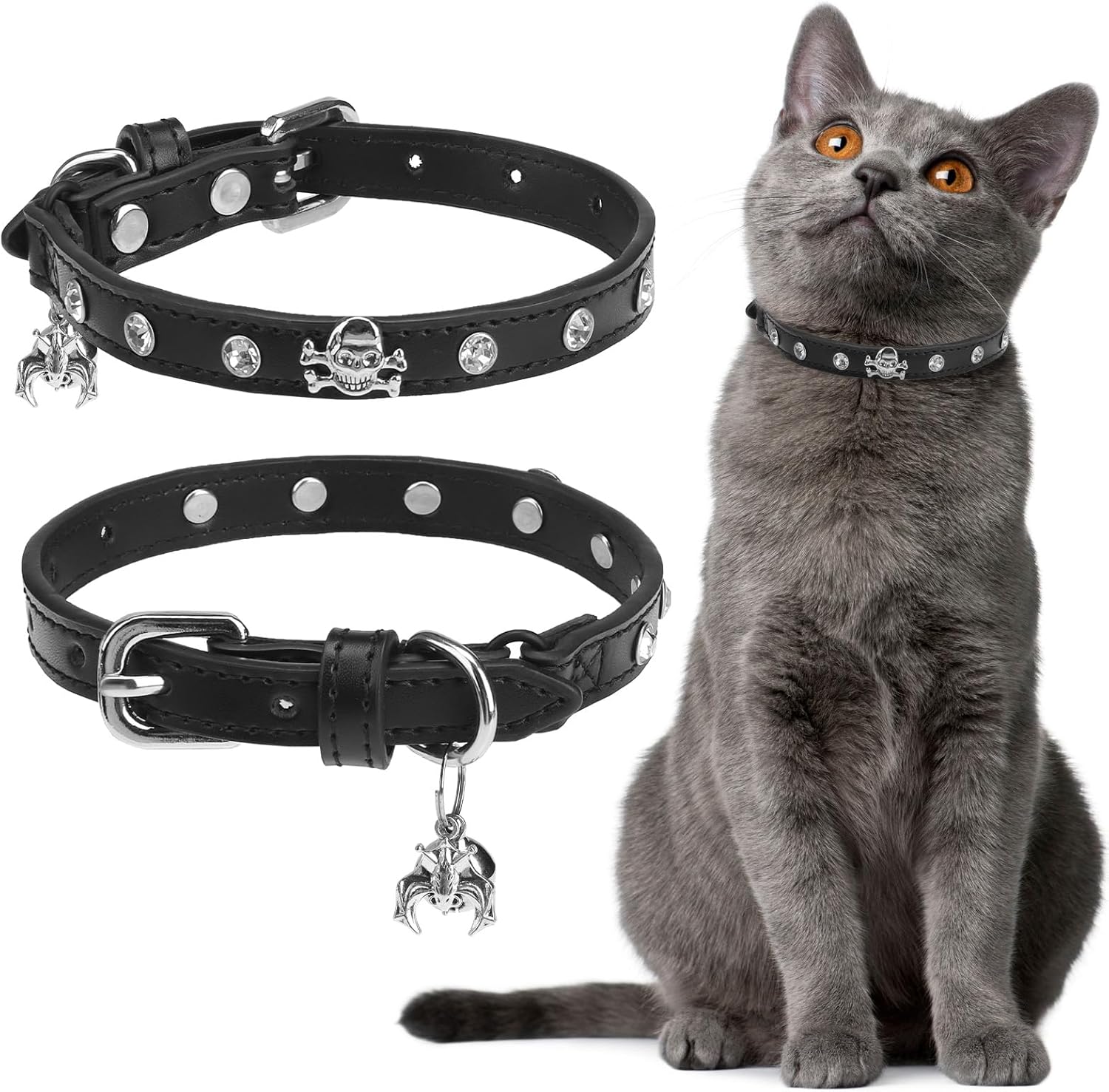 - Halloween Cat Collar:Our Halloween themed collar is designed with a white diamond skull pattern, perfect for adding a festive touch to your pet. It also includes bells and small charms to add charm to your pet.