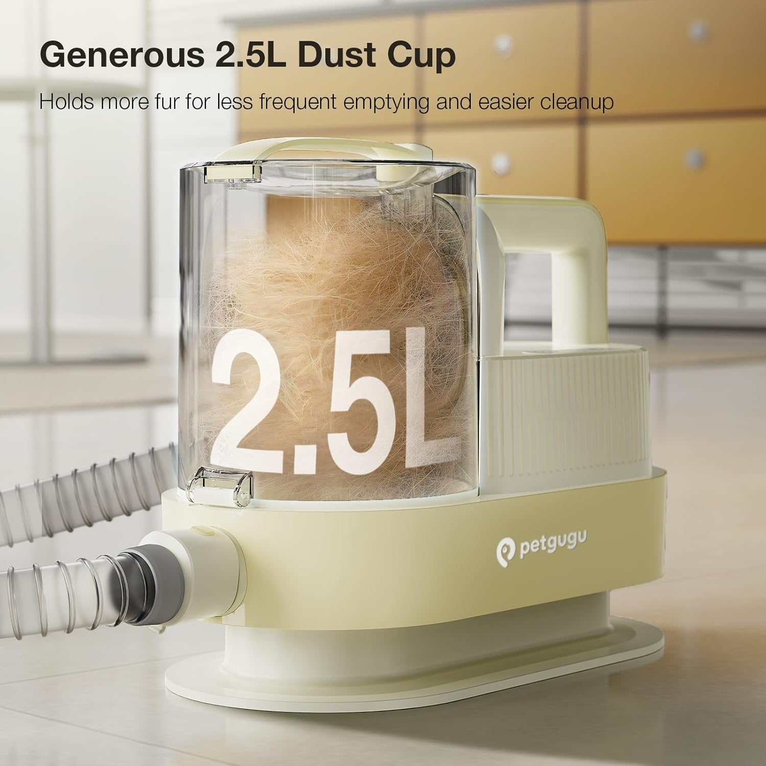 - Powerful Suction &2.5L Large Capacity Dust Bin: The pet vacuum for pet hair features a strong 11000Pa suction and a spacious 2.5-liter (0.66 gallon) dust cup that collects up to 99% of loose dog hair. Designed for heavy shedders, this dog hair vacuum reduces hair spread around your home and requires less frequent emptying