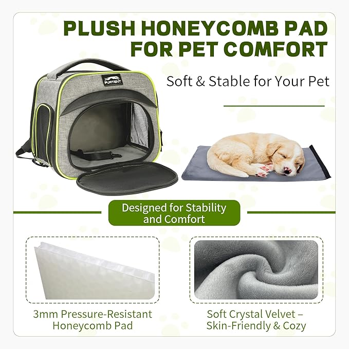 - 【STURDY & DURABLE】FURTENT Small Pet Carrier is made of high-density 900D Oxford fabric, with excellent anti-scratch, waterproof, and dustproof performance, resistant to daily wear and outdoor conditions. The bag features a built-in 2.5MM support skeleton, keeping the structure stable without collapse or deformation, whether for short trips or long use, providing your pet a comfortable and secure space on the road.