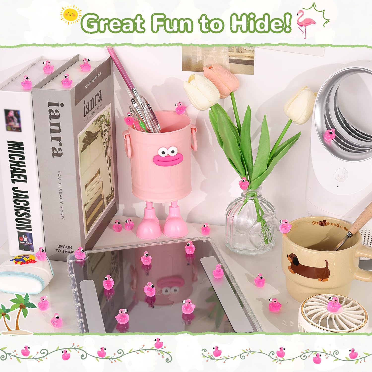 - PACKAGE CONTENT -- One Package includes 200 pcs rose pink mini flamingo ducks glow in dark, each tiny figure is crafted with intricate details, making them cute and eye-catching.Use them to add charm and whimsy to dollhouses, or having hide games to enhance fun