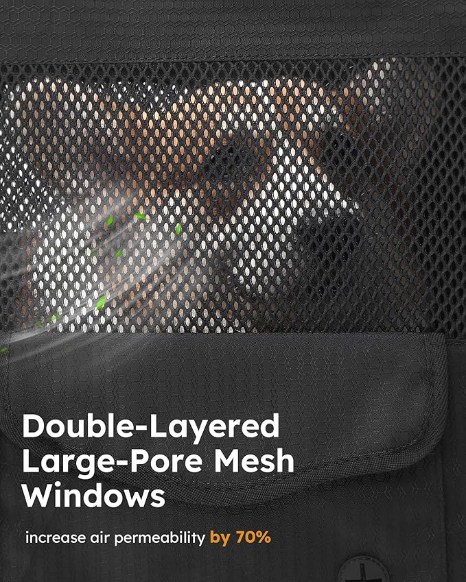 - Breathable, UV-blocking: The double-layer, large-mesh design improves airflow by 60% and extends the lifespan of the pet stroller. A retractable sunshade on the top protects pets from direct UV rays, keeping them cool during summer travel