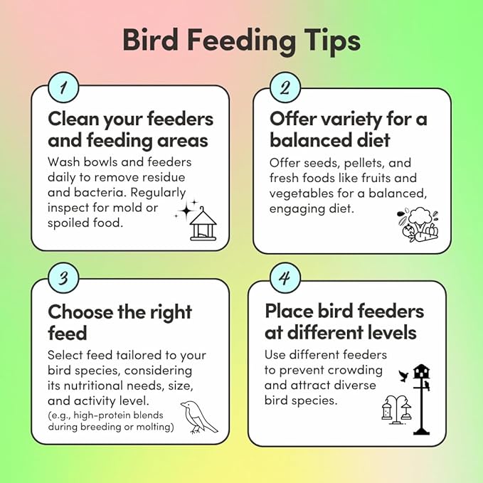 - Balanced & Foraging-Friendly Blend: Features safflower, millet, oat groats, and fruit powders for variety birds love—promoting natural foraging behavior and daily enrichment.