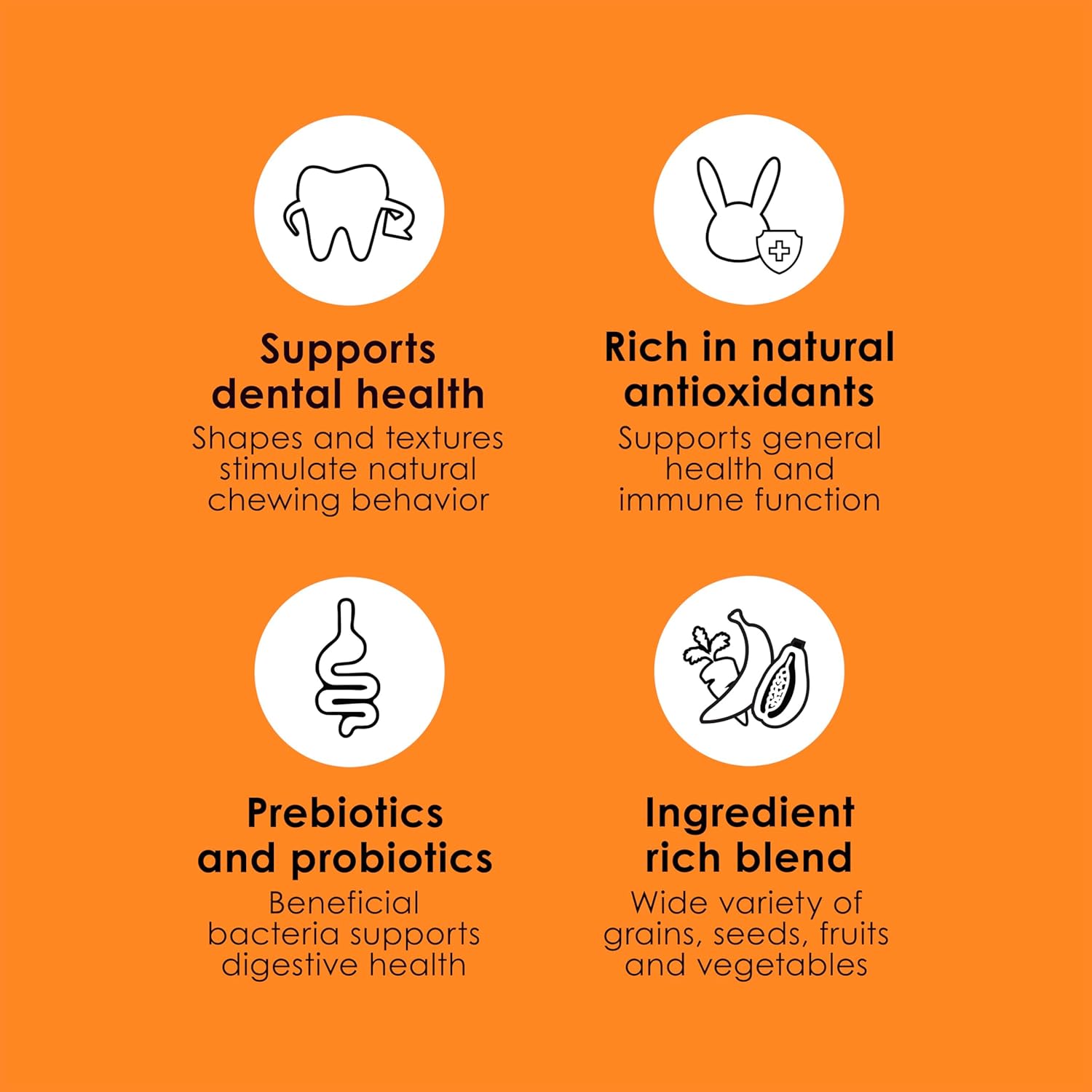 - INGREDIENT RICH BLEND with grains, seeds, fruits, and vegetables for variety