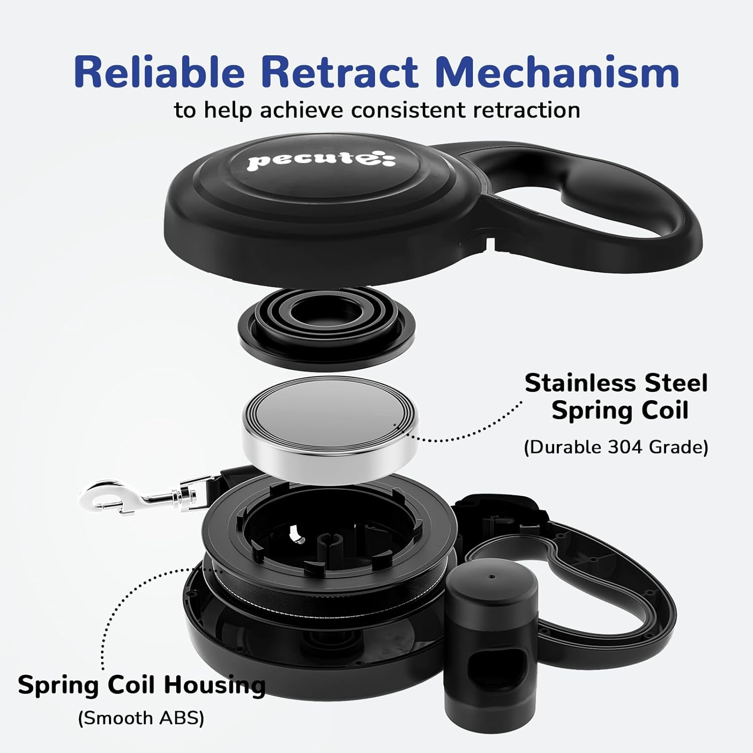 Pecute 32ft Retractable Dog Leash with Reflective Strips, One-Button Control & Sturdiness Nylon Material, Long Leash Retractable with Poop Bag Holder for Medium Large Dog
