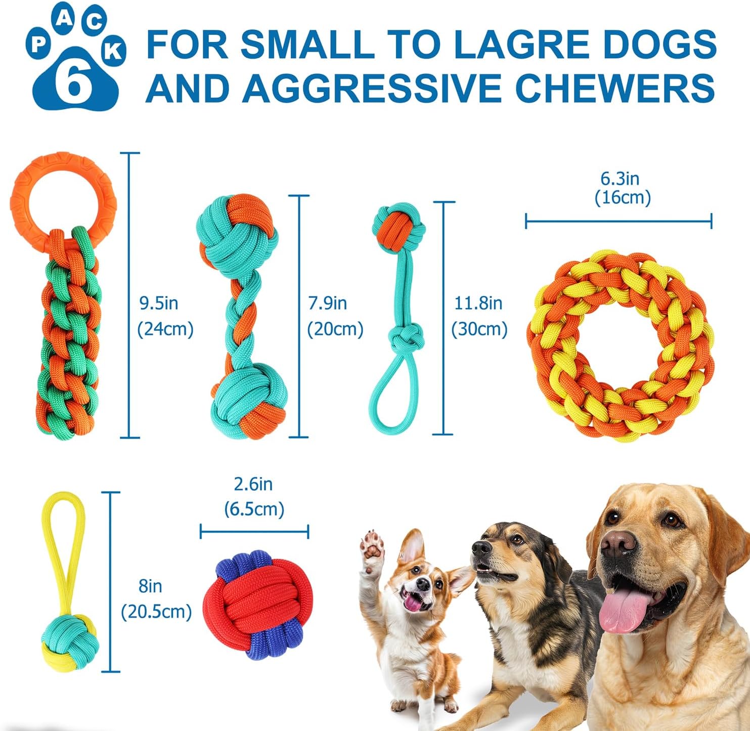 Aitmexcn Dog Rope Toys for Large and Medium Aggressive Chewers, 6 Pack Heavy Duty Dog Rope Toy for Large, Dental Cleaning Chew Toys, Tug Toy for Boredom, 100% Cotton Indestructible Pet Toy