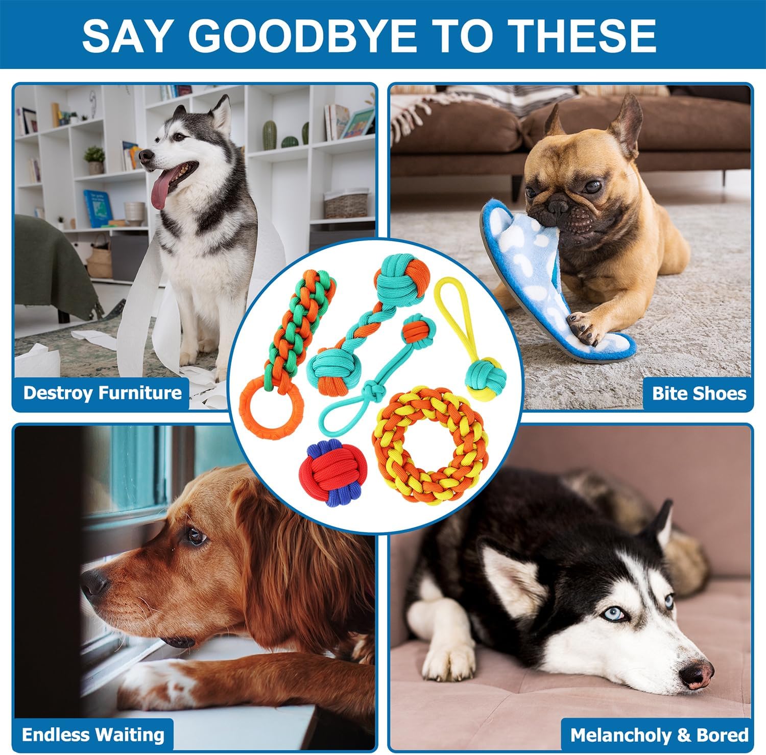 - GREAT FUN - Our set features a range of rope toys suitable for different play styles. From tug-of-war to fetch, these toys offer endless fun and interactive bonding opportunities between you and your dog. Each dog rope toy is designed with ergonomic handles, ensuring a comfortable grip during playtime. The handles also provide an added layer of control, making it easier to engage in interactive play and training exercises