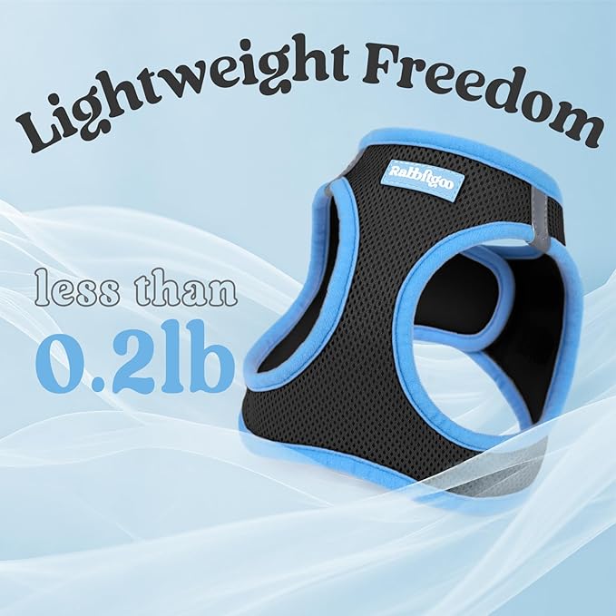 rabbitgoo Dog Harness Small Sized and Leash Set, Step-in Breathable Pet Harness, Soft Walking Reflective Puppy Vest for Small Dogs, Black & Light Blue, XS