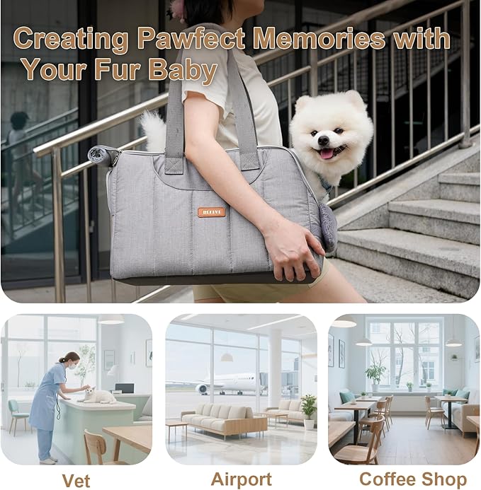 - FITS MOST AIRLINE SEAT & SECURE: The package contains a dog/cat purse bag, a front soft pillow, a hard base insert and a poly-cotton crossbody strap. The dog carrier for small dogs has a wider adjustable safe belt and internal escape-proof zipper keeping your fur baby safe.Soft side design prevents cabin rejection (fits under 90% airline seats).