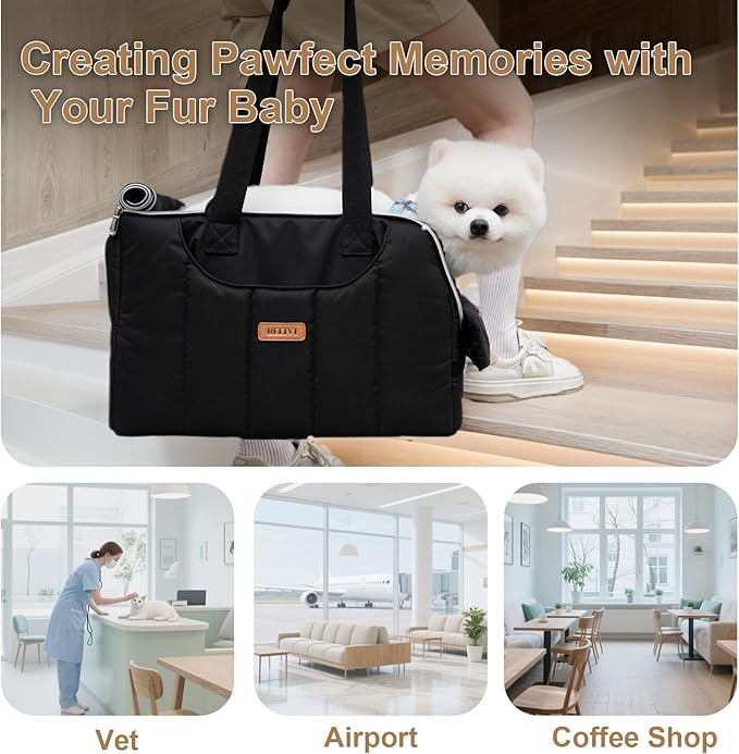 - FITS MOST AIRLINE SEAT & SECURE: The package contains a dog/cat purse bag, a front soft pillow,a hard base insert and a poly-cotton crossbody strap. The dog carrier for small dogs has a wider adjustable safe belt and internal escape-proof zipper keeping your fur baby safe.Soft side design prevents cabin rejection (fits under 90% airline seats).
