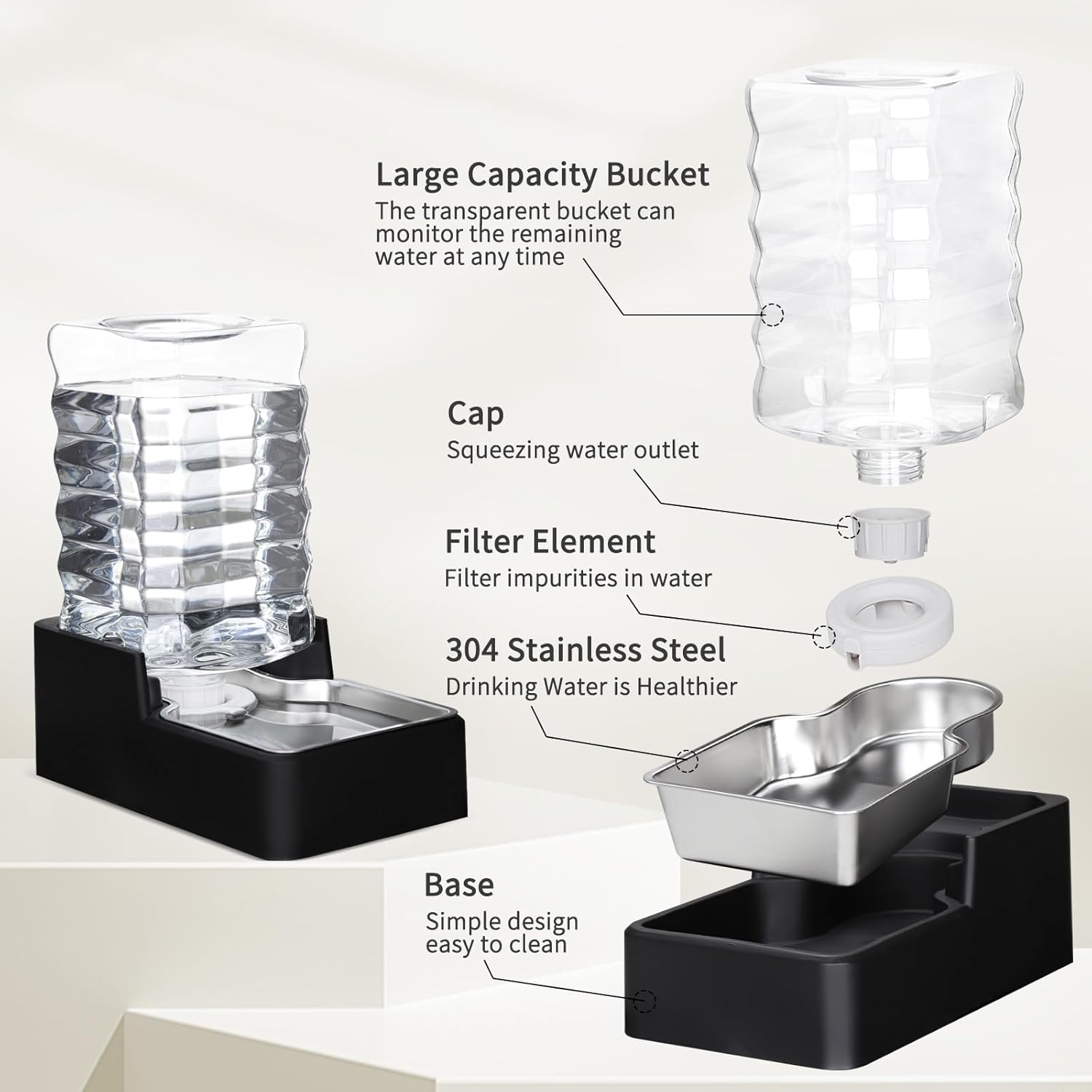 - Smart Gravity Feed & Effortless Refilling: Engineered with an efficient gravity-fed system, this dispenser automatically maintains the ideal water level in the stainless steel bowl as your pet drinks. Spills are minimized, and your pet enjoys a comfortable, natural drinking position. Perfect for pet parents with busy schedules—it’s like having a caring assistant for your furry family members!