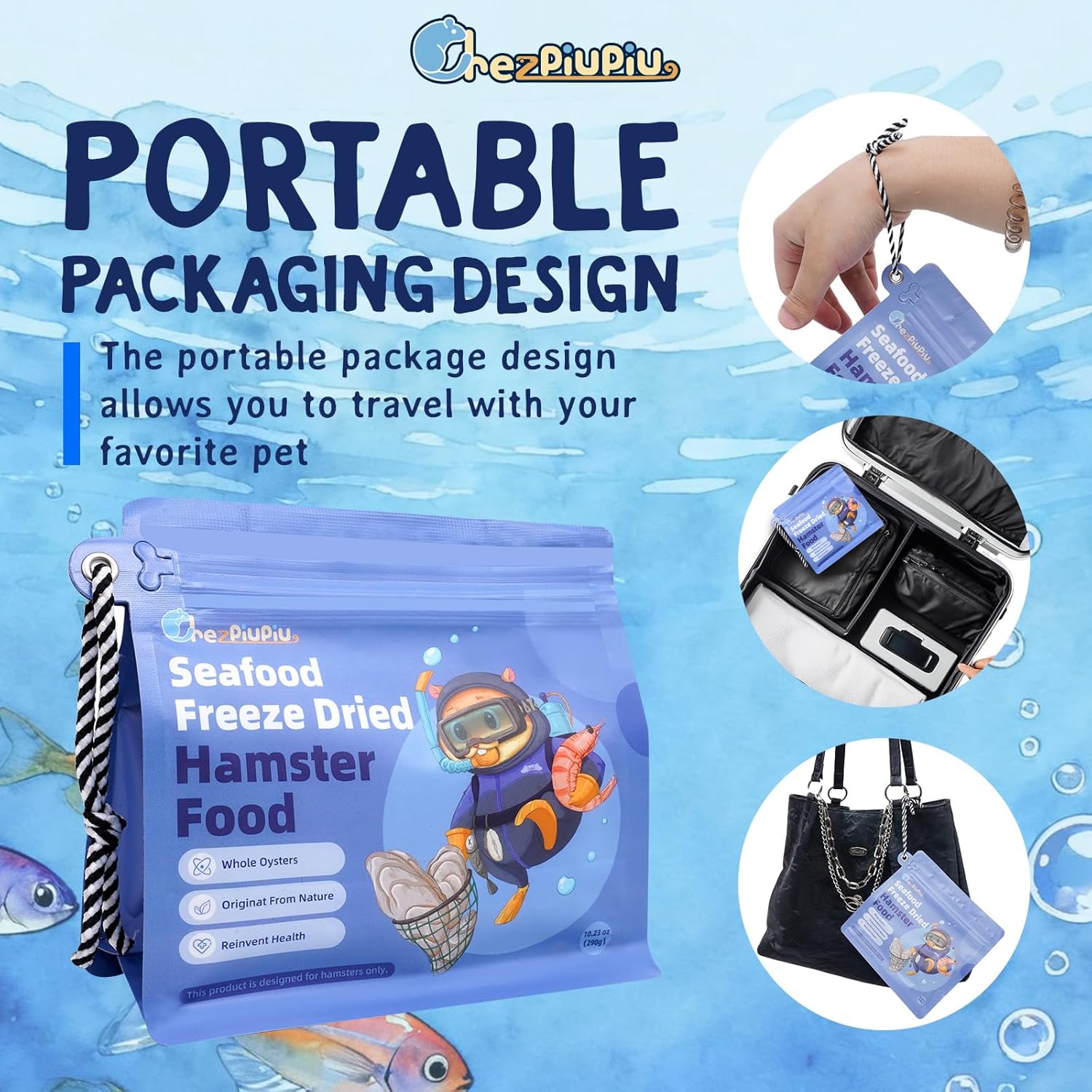 Premium Hamster Food 10.23oz – Natural High-Protein Complete Diet with Freeze-Dried Cod, Antarctic Krill & Black Soldier Fly Larvae – Supports Digestion, Dental Care & Immune Health – Travel Bag