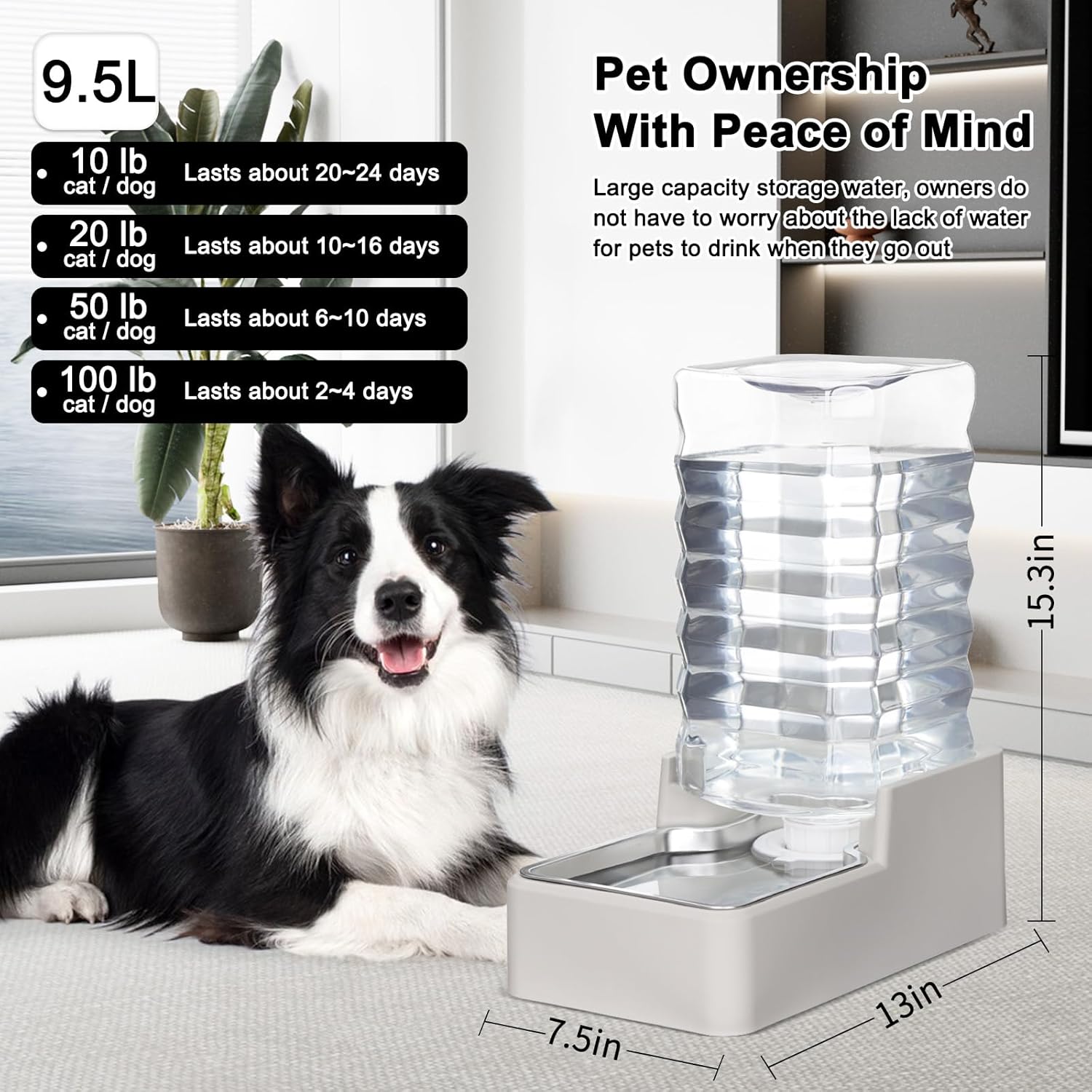 - High Capacity with Peace of Mind: This generously sized automatic water dispenser holds a substantial 9.5L of fresh water—ideal for multi-pet households or extended use. The crystal-clear transparent design lets you monitor water levels effortlessly. No more worrying about frequent refills! Ensure your furry friends stay happily hydrated while you enjoy added convenience and peace of mind, even during busy days or short trips.