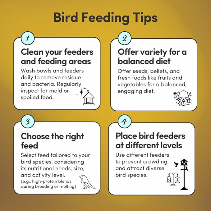 - USA MADE, FAMILY-OWNED QUALITY – Proudly made in the USA using clean, trusted ingredients from family-owned farms. Free from artificial fillers, colors, or preservatives—offering a natural, wholesome diet you can feel good about feeding your bird.