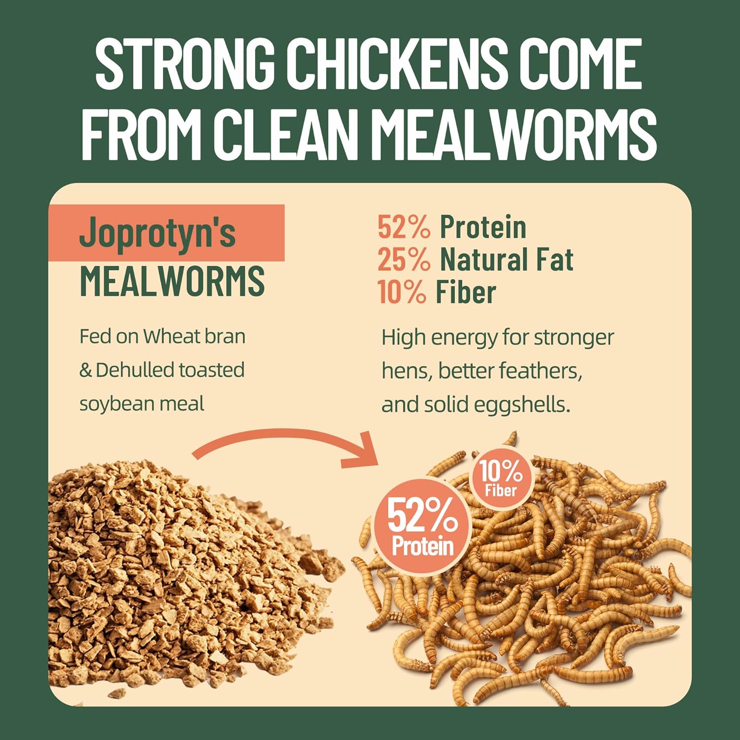 - 【Perfect for Poultry, Wild Birds & More】Loved by chickens, ducks, quails, bluebirds, robins, and even reptiles. Whether sprinkled as a treat, mixed with daily feed, or added to bird seed, Joyprotyn Mealworms are a high-energy superfood that keeps every beak happy.