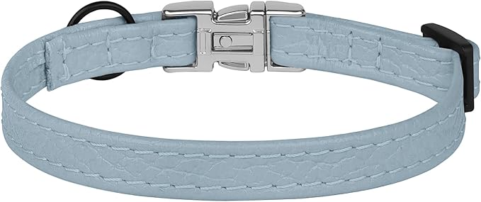 Leather Cat Collar with Buckle and Removable Bell - Non Breakaway Adjustable Soft Safety Small Pet Collars for Girl Boy Cats Kitten (Cornflower)