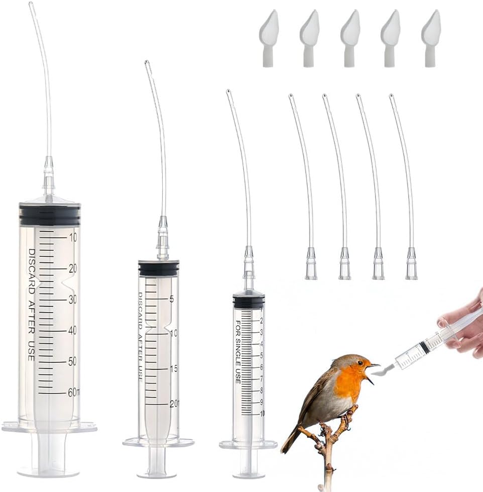 Baby Bird Feeding Syringe Set ,Parrot Small Pet Manual Feeder Measuring Tools, Milk Water,Liquid Food,Reusable (10ml+20ml+60ml)