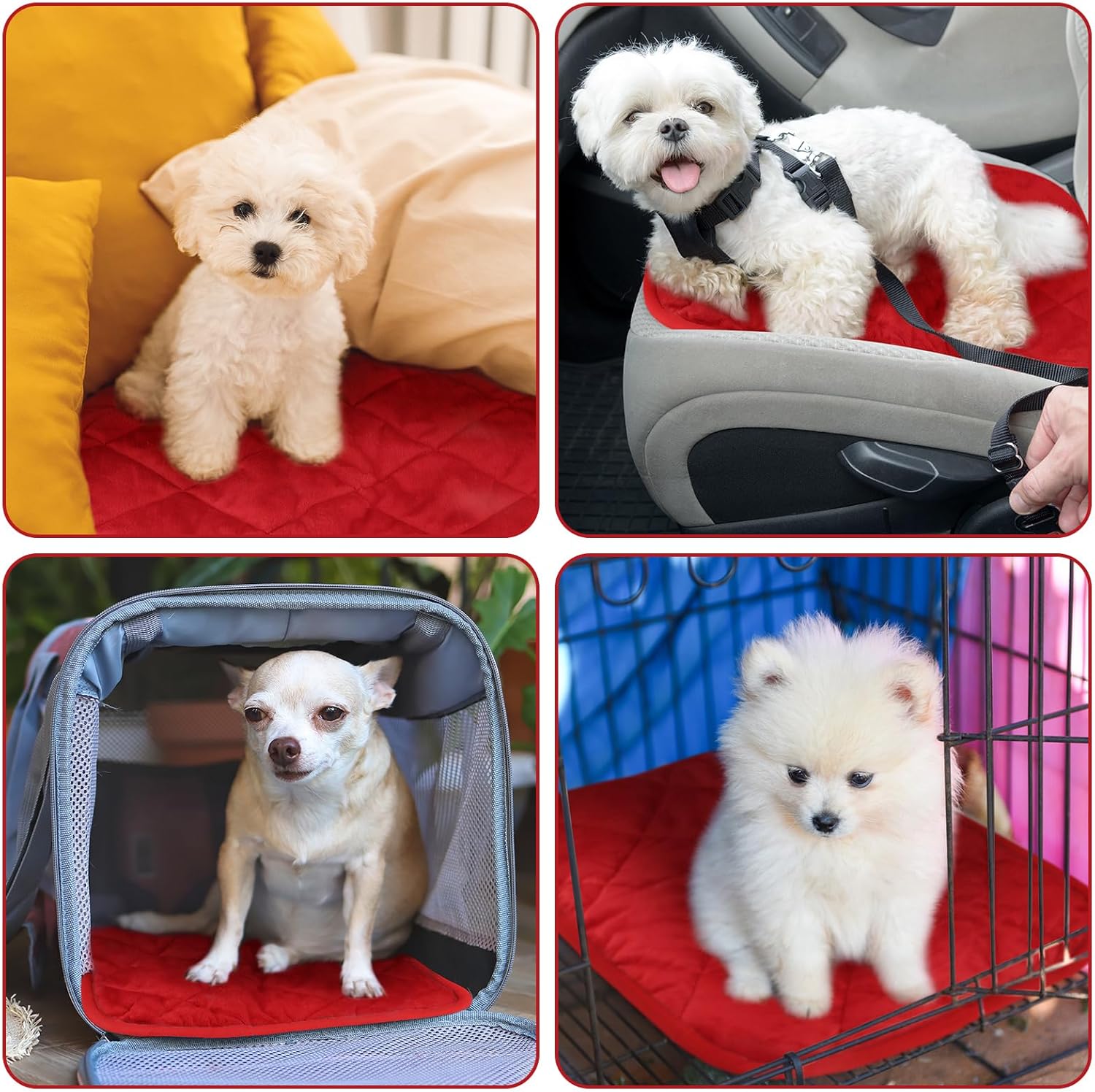 4 Pack Self Heating Cat Pad Self Warming Dog Mat Reflects Body Heat Extra Warm Thermal Pet Pad Washable Dog Cat Bed Crate Bed Mat Blanket (16 x 20 Inch,Red)