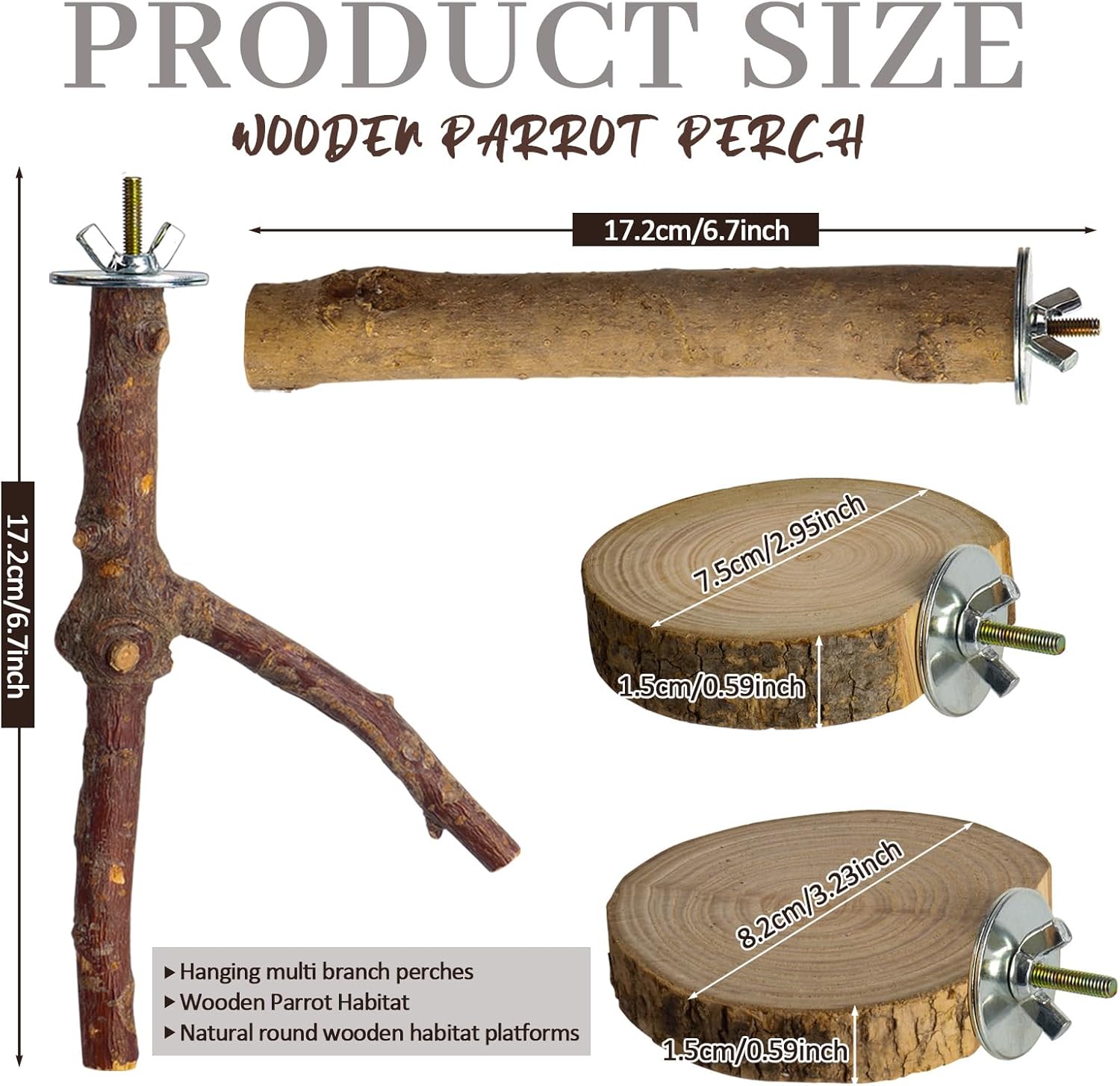 - Natural Wood Materials: These parrot perches are crafted from untreated, high-quality natural wood, ensuring durability and sturdiness. It provides a natural environment while naturally helping birds grind their trim their claws.