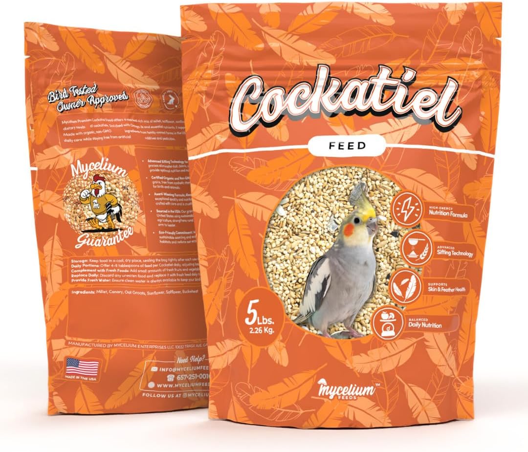 Mycelium Cockatiel Bird Food (5 LB Bag) | Organic Bird Seed for Cockatiels & Small Birds | Supports Feather Shine & Daily Energy | Premium Dust-Free Blend | Non-GMO & USA Made