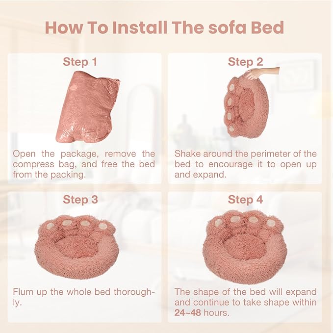 - 【Quick Recovery】- The cute dog bed may be flatten during shipping, it will regains shape naturally in 24-48 hours. In addition, you can speed up this progress by manually adjusting and shaking the paw pet bed.