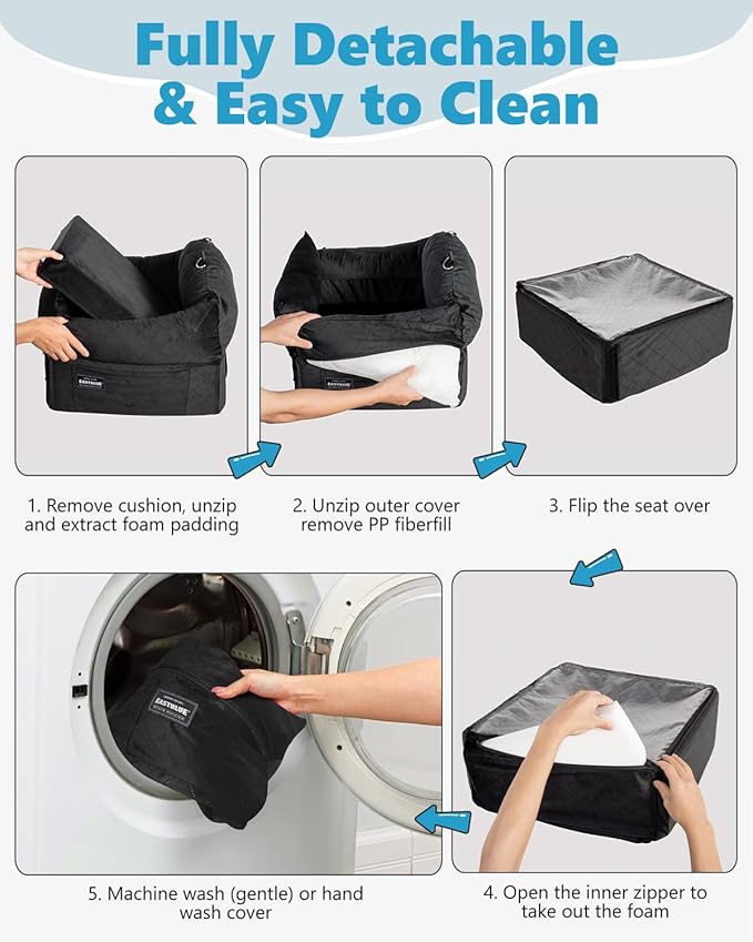 - Easy to Clean: Our dog car seat booster comes with a fully removable and machine-washable cover for effortless maintenance. Simply unzip to remove the cover — the quick-release design makes it easy to keep your dog’s car seat fresh and clean on every trip.
