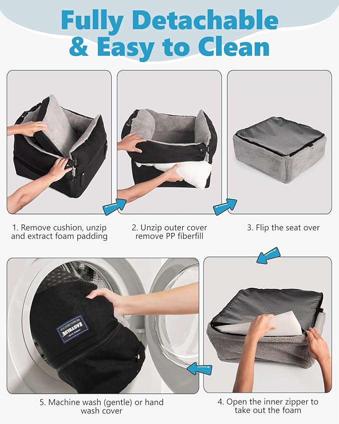 - Easy to Clean: Our dog car seat booster comes with a fully removable and machine-washable cover for effortless maintenance. Simply unzip to remove the cover — the quick-release design makes it easy to keep your dog’s car seat fresh and clean on every trip.