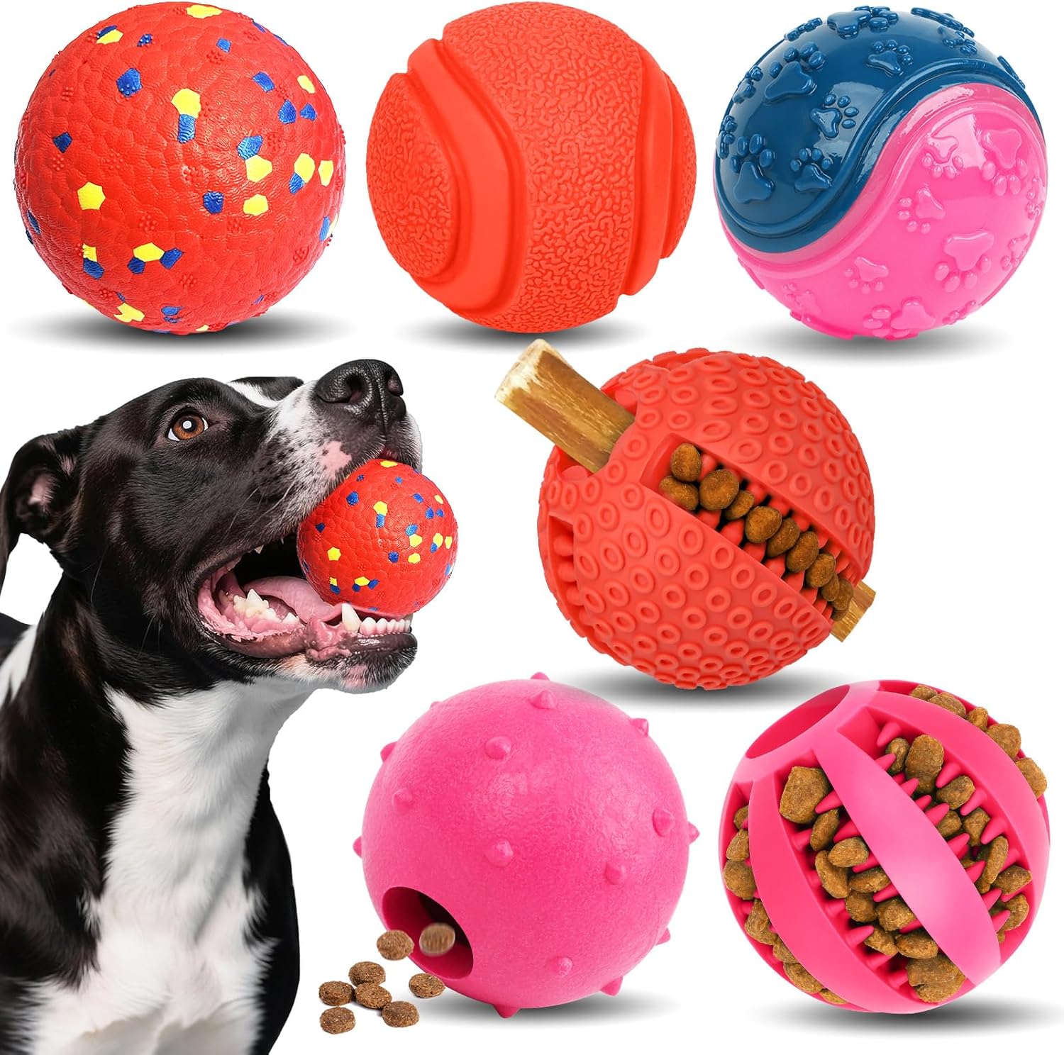 Dog Balls 6 Pack, Puppy Toys for Small & Medium Dogs, Interactive Dog Fetch Ball, Squeaky Chew Toys for Teeth/Slow Feeder/IQ Training/Playing, Dog Toys to Keep Them Busy