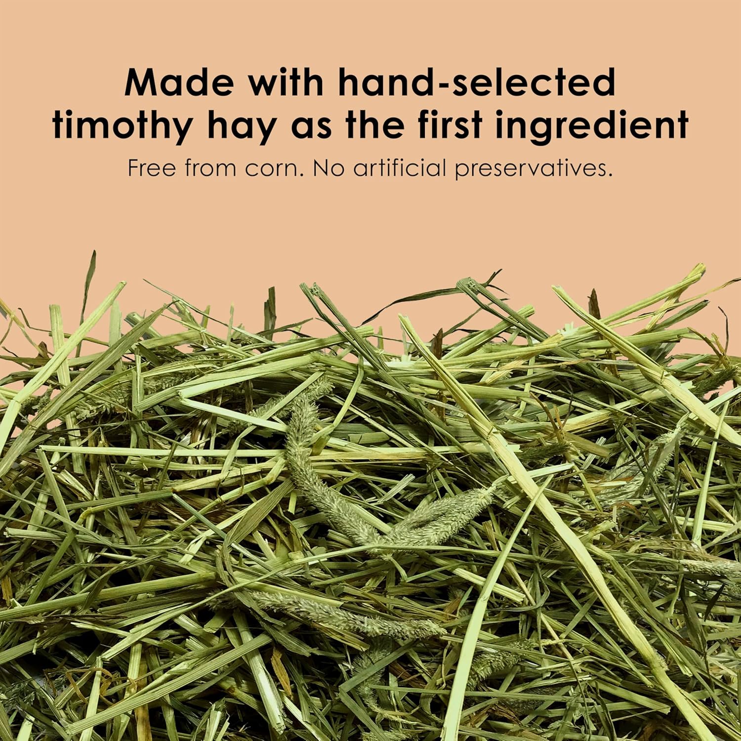 - HAND-SELECTED TIMOTHY HAY is the first ingredient of this nutritious diet developed by a small animal nutrition expert
