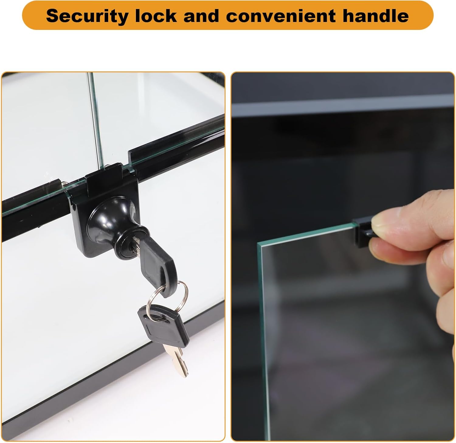- Easy to Install & Maintenance:Front opening reptile terrarium with door handles included for easy cleaning & feeding.Easy to install or disassemble in 5 minutes with step by step instructions; (The backgroud is not included). Our glass terrariums are carefully packaged with box of tough cardboard and thickened reinforced foam for transportation.
