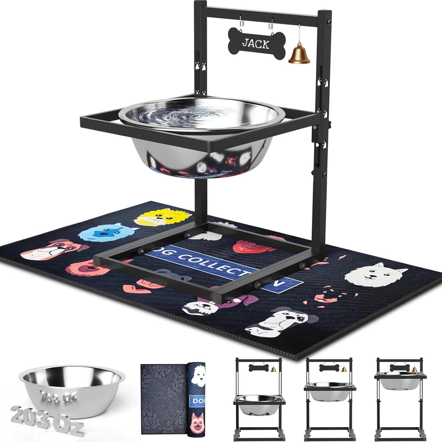 - EASY INSTALLATION, COMPLETE ACCESSORIES: The set includes: 1 elevated dog bowl stand, 1 6L stainless steel food bowl, 1 splash mat, and a full set of installation accessories. Assembly takes just 5 minutes with no additional tools required—effortless and hassle-free