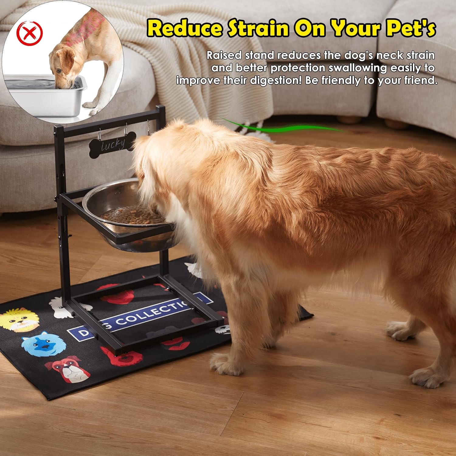 - SAY GOODBYE TO MESSY FLOORS: The elevated water bowl comes with a drip tray that fits beneath the stand, collecting spills to keep feeding areas dry and tidy. Perfect for dogs prone to messy eating and drinking