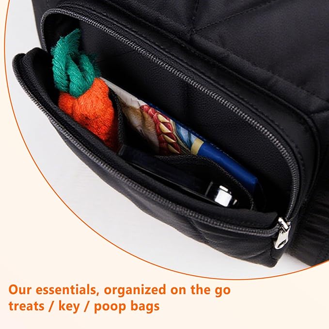 - Thoughtful Features Smarter Organization It’s more than a carrier—it’s your mobile command center. The spacious main compartment comfortably fits your pet while multiple zippered pockets (inside and out) keep your phone keys treats and poop bags organized and within easy reach