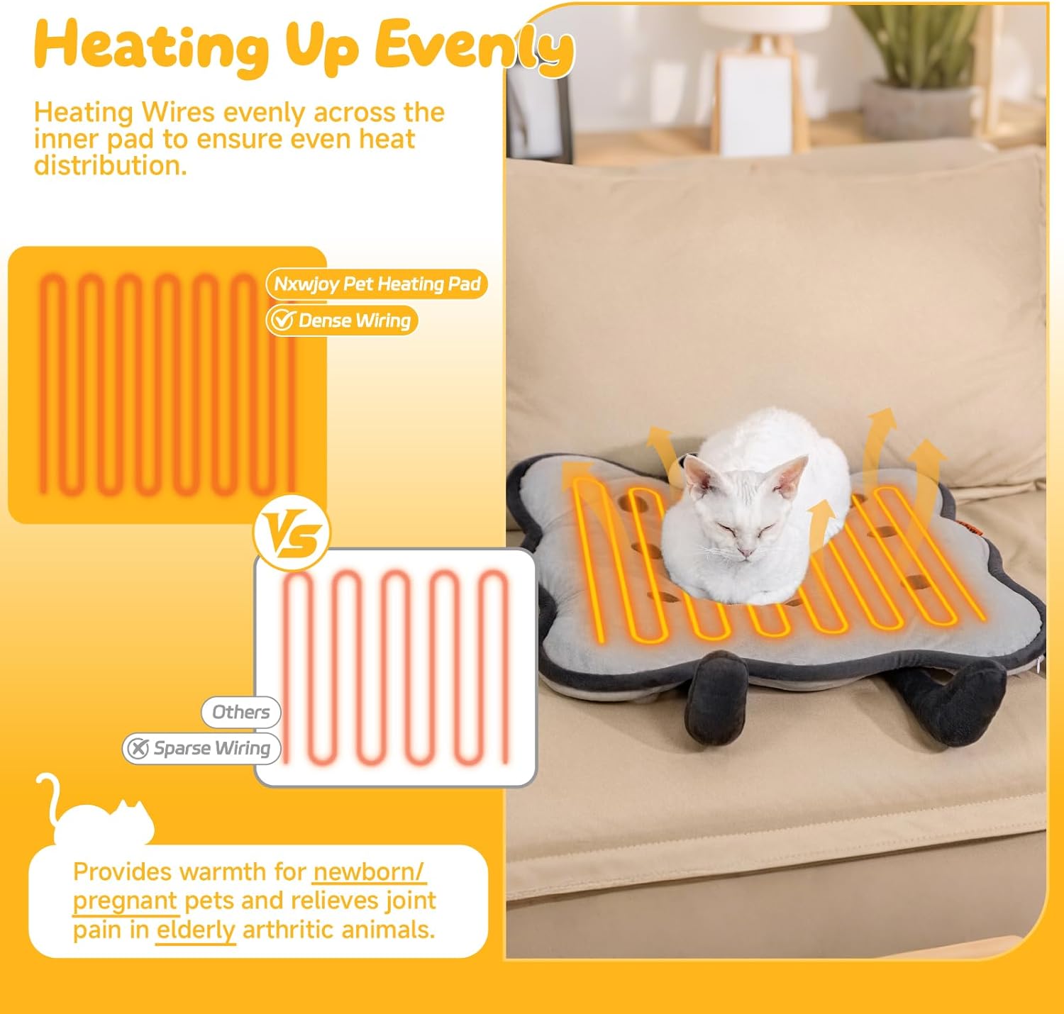- Note: The Nxwjoy pet heating pad is easy to use right out of the box—no installation needed. Built-in heating wire so that please do not fold it at will. Nxwjoy is committed to providing you and your pet kids with satisfactory merchandise, and we are confident that our customers will love our products as much as we do. However, if you are not satisfied with our products, please feel free to contact us. We will try our best to provide you with satisfactory service.