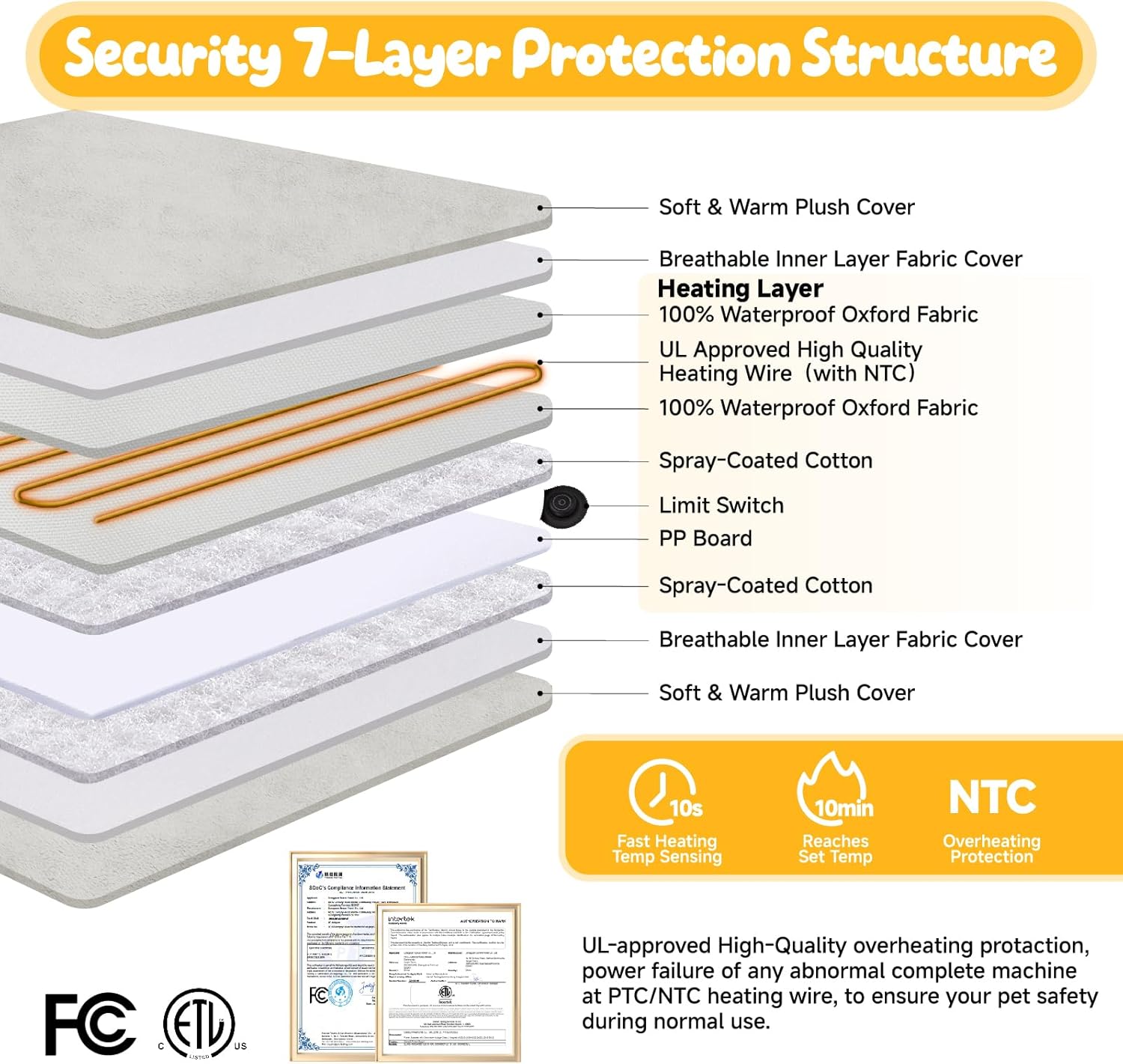 - Rapid Heating & Overheating Protection: Nxwjoy cat heating pad uses a high-quality heating wire to achieve rapid temperature rise, 10s can feel the temperature change, and the 10min can reach the set temperature; the heating plate built-in NTC, the temperature exceeds the set temperature will pause the heating, safe and reliable, to ensure that cats can be assured of a long time to lie down and rest.