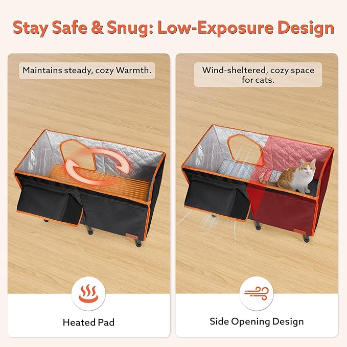 - WORRY-FREE WINTER SOLUTION:Reliable and built to last, this heated outdoor shelter offers a warm, dry, and secure space for feral or stray cats, giving you total peace of mind.