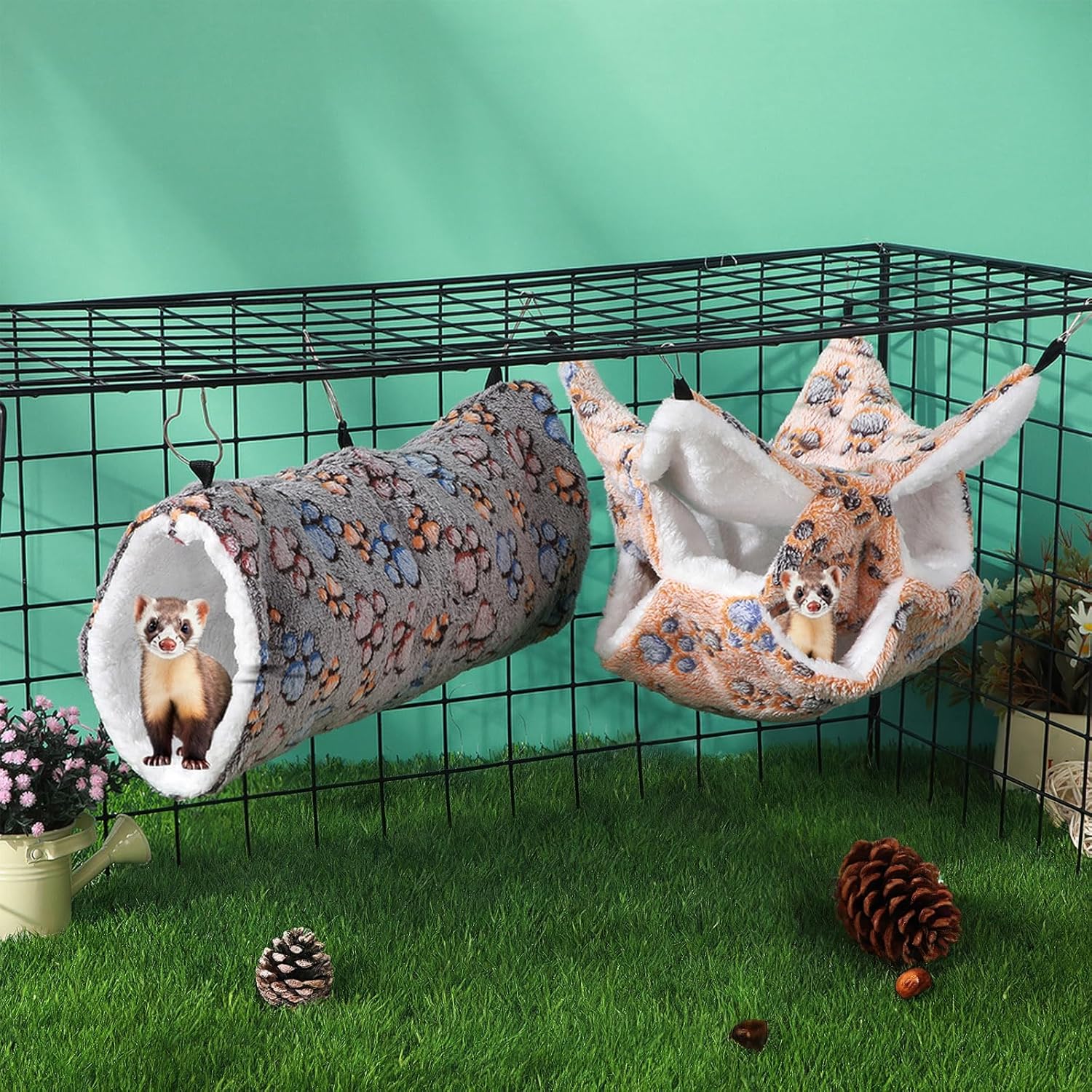 - Scope of Application: the ferret hammock set, ferret cage accessories, tunnel and bed are suitable for hamsters, guinea pigs, chinchillas, ferrets, parrots, rabbits, mice, rats, hedgehogs, parrots and other small animals, it is a thoughtful gift for your lovely pets