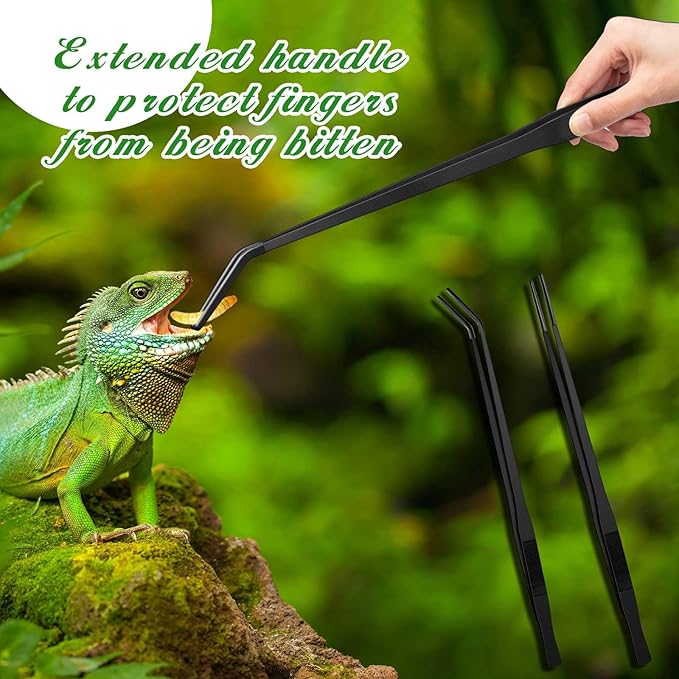 - Comfortable Size: the straight tweezer is about 18.9 inches/ 48 cm, and the curved tweezer is about 18.5 inches/ 47 cm in length, these reptile tongs are designed keeping in mind the comfort and ease of the users, their length makes them suitable for feeding reptiles without putting your hands close to the reptile