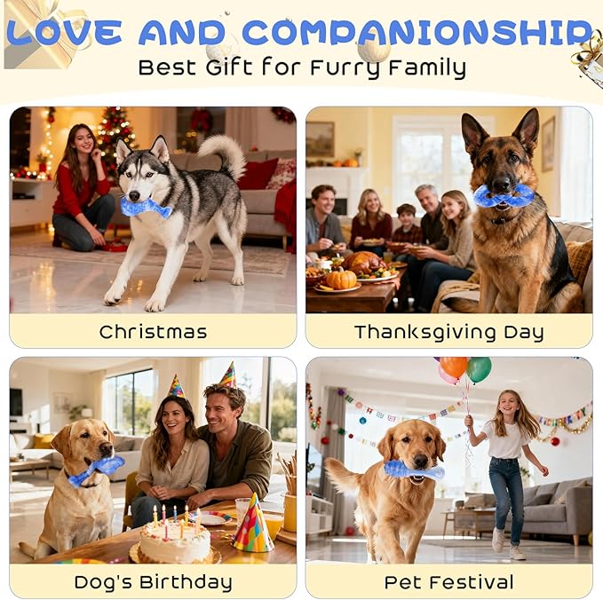 - Companioning and Caring: You won't have to worry about your furry friends feeling lonely or bored when you're off to school or work, or about them getting stressed, anxious, or restless. Relax - our toy dog chew set will help you take good care of them. While you're taking a break, you can also enjoy a relaxing break with your furry buddy over interactive dog toys for large dogs