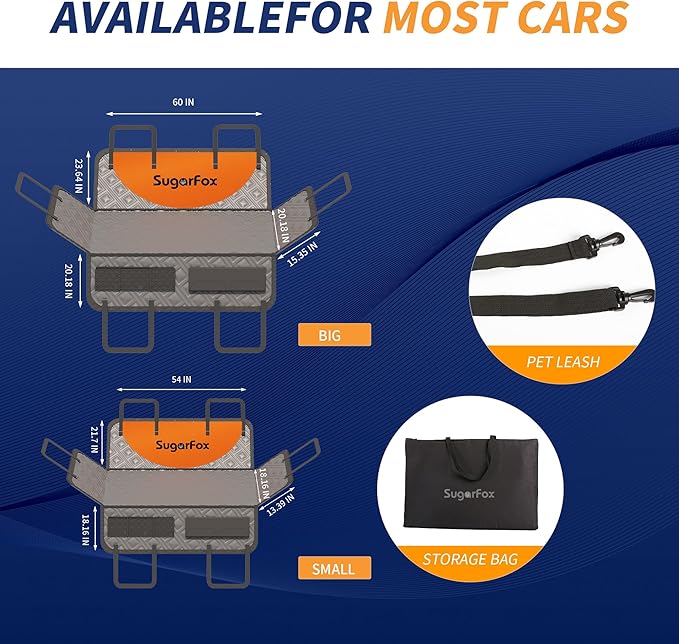 - 【Suiable For Most Vehicle】: Our backseat extender for dogs measures 18.16" x 54"(hard bottom size), fitting most cars' back seats, SUVs, and small trucks. Coming with a dog safety belt and storage bag, it brings you more convenience.