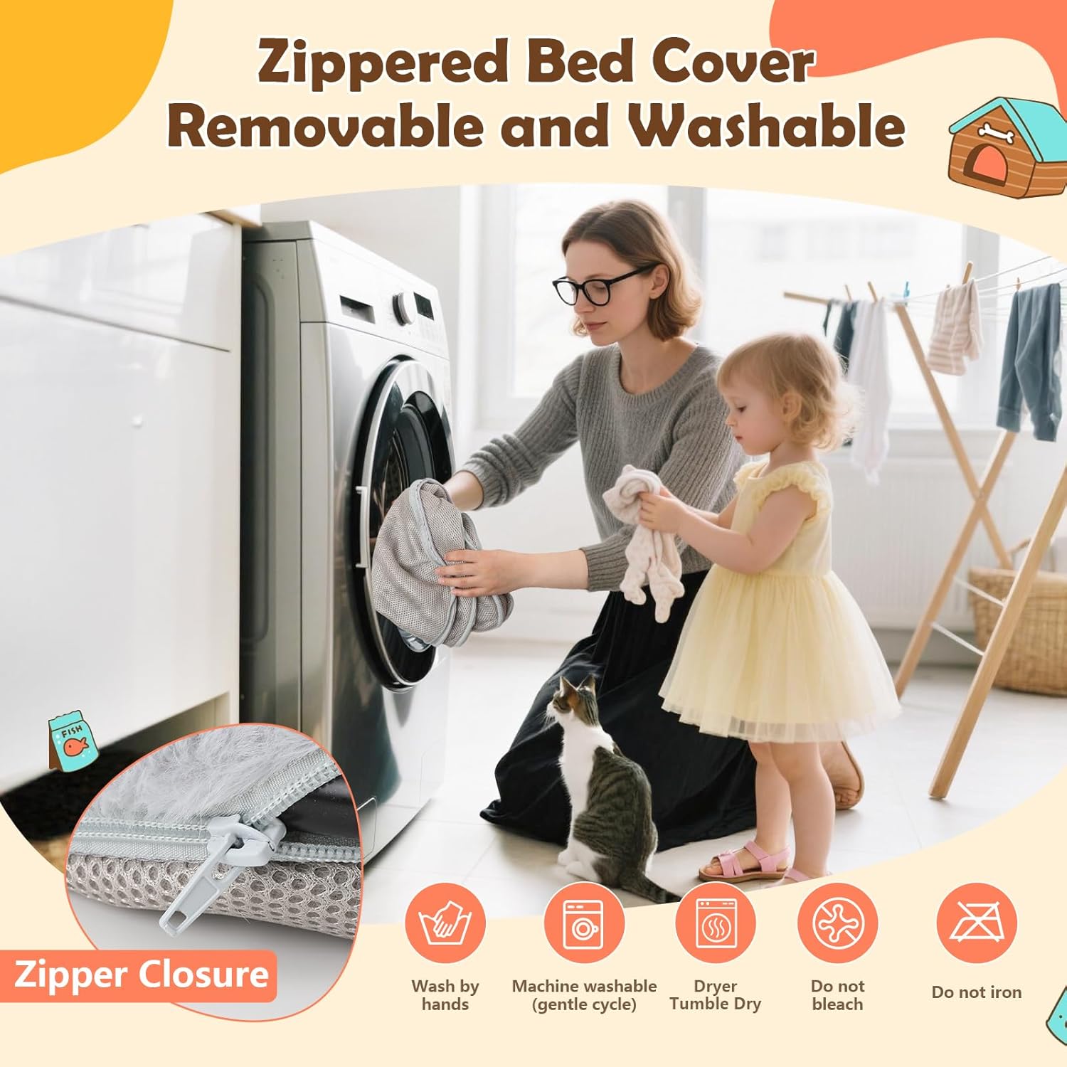 - 【Easy Assembly & Maintenance】This desk bed for cat comes with everything needed for easy setup, including clear instructions and a helpful video. The cover features a convenient zipper design, making it easy to remove and wash for a fresh, clean look. When not in use, simply fold this cat bed desk attachment to save space.